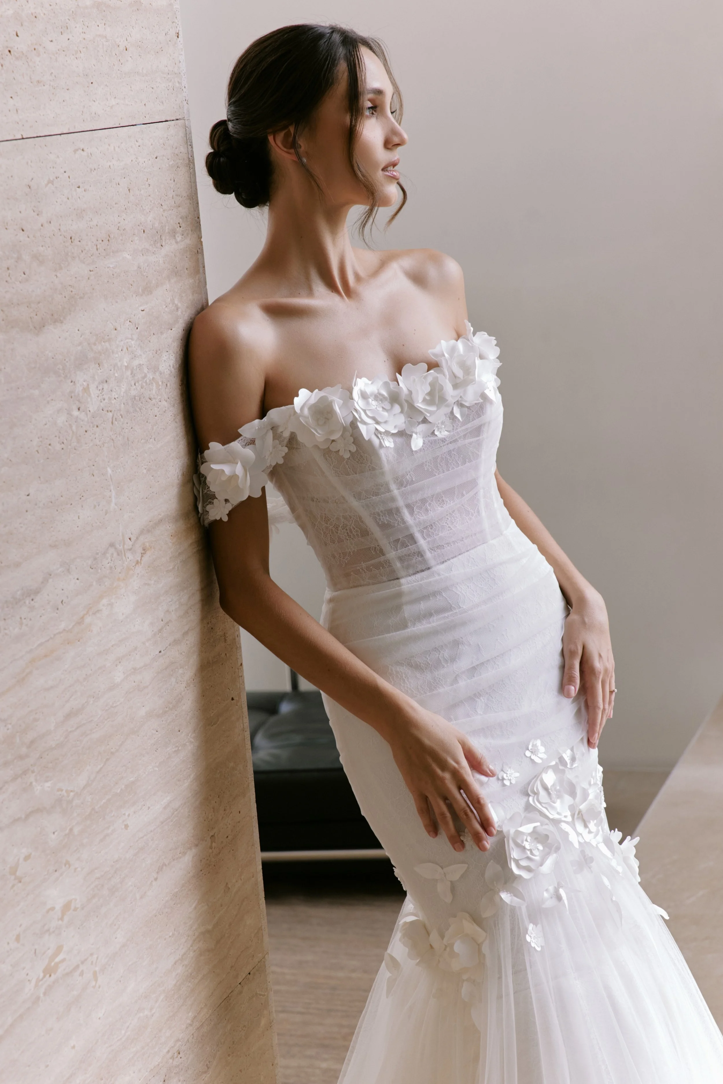 “This season continues to offer a full complement of bridal styles, from refreshingly light bohemian gowns through to a more traditional and embellished ball gown.”
